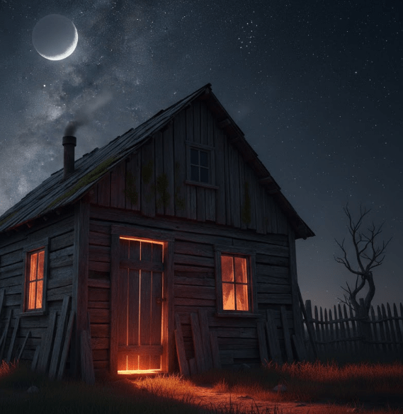 The small, misshapen shack that Ezekiel repaired after vampires attacked stood a short distance away from them, the glow of a dim fire escaping from underneath a crooked front door.